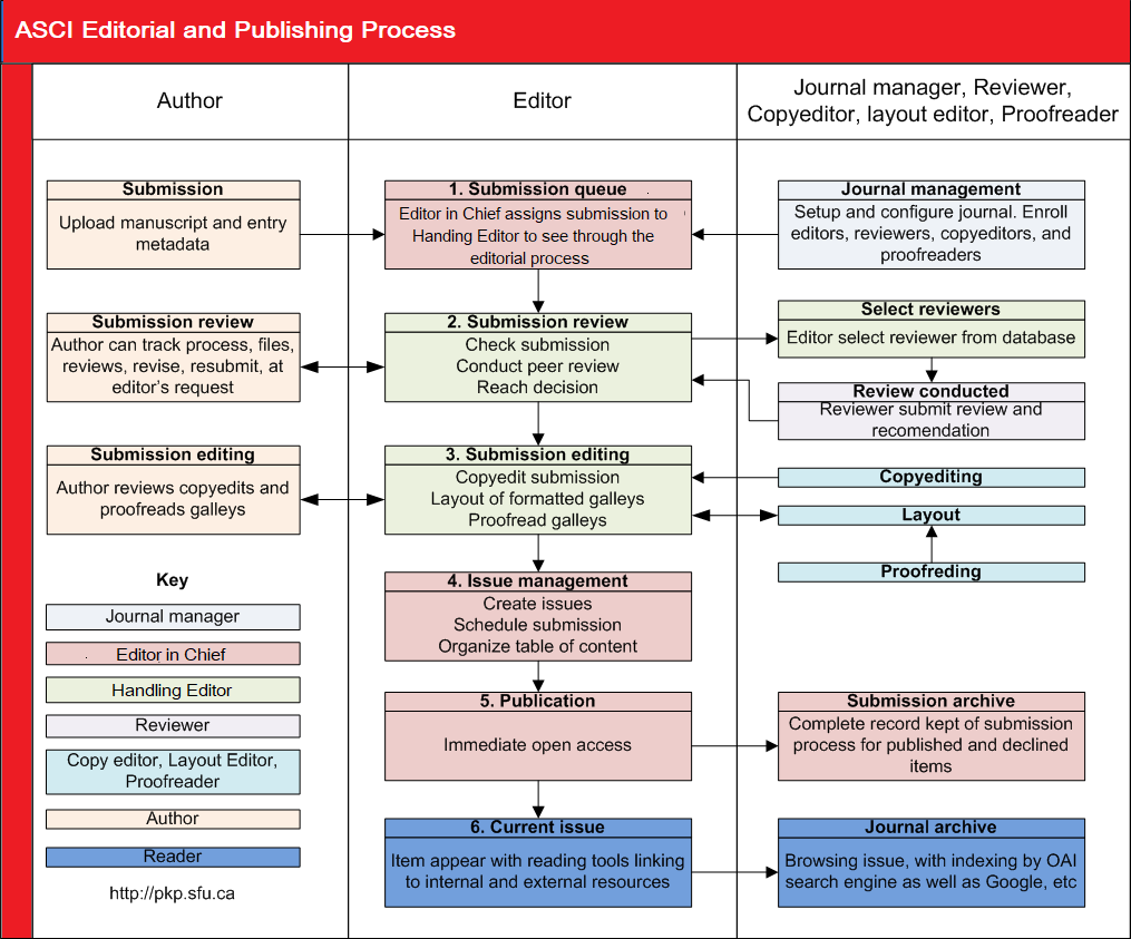ASCI Journal follow the editorial and publishing process set by PKP, as presented in the following figure.